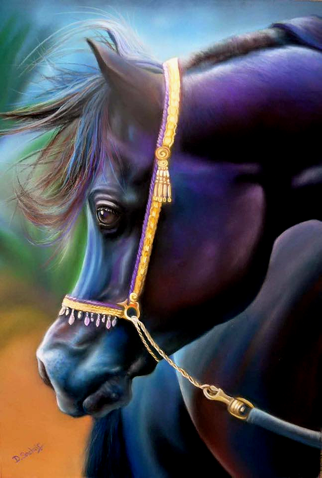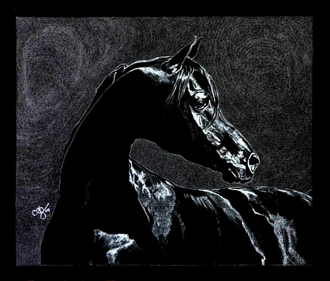Beautiful black Arabian horses that inspire artists from all over the world! This is only a partial showcase of some of the artwork of our horses.